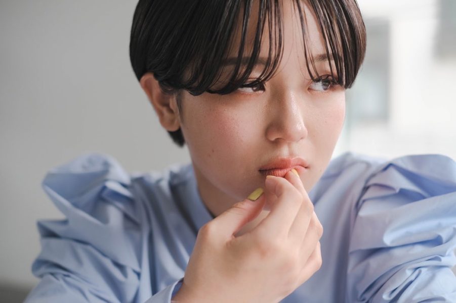 投稿では、ブルー系のトップスを着てイエローのネイルをした真雪が指先を顔にあて、笑顔や憂いを帯びた表情をした写真など、計3枚が公開された。