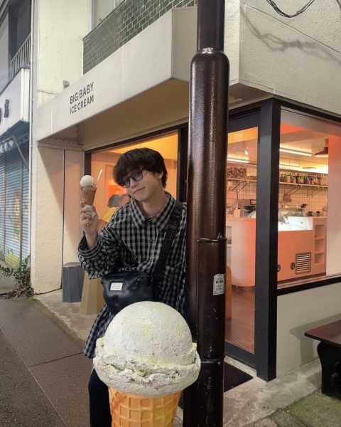 投稿では、サングラスをかけたゆうたろうが、お店をバックにアイスを持つ姿など、計4枚の写真が公開された。