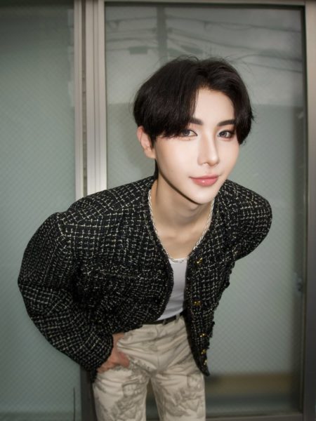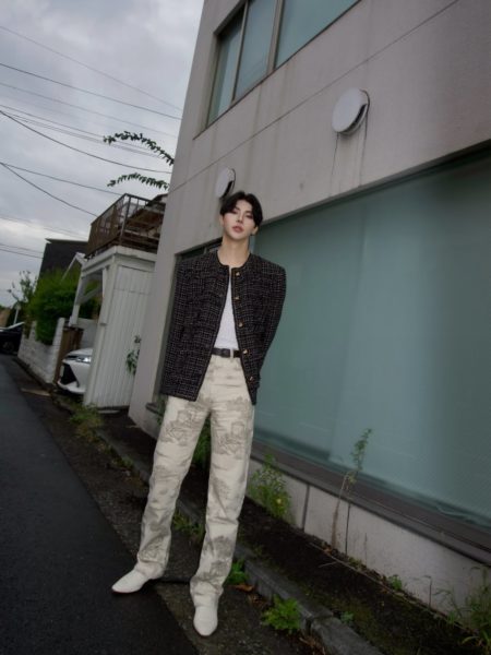 投稿では、ジャケットにアイボリー系のパンツを合わせたGYUTAEが、少し横を見つめているような姿や、前かがみで笑みを浮かべている姿など、計12枚の写真が公開された。